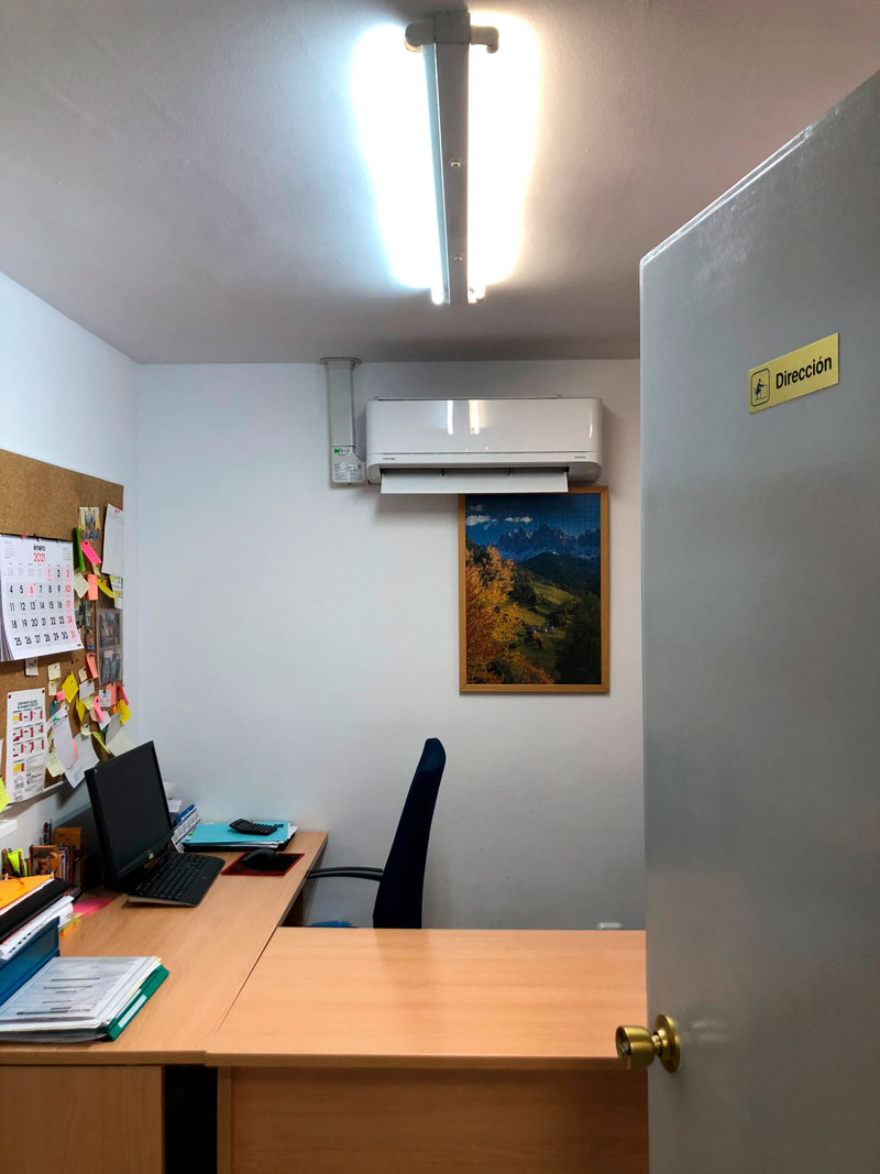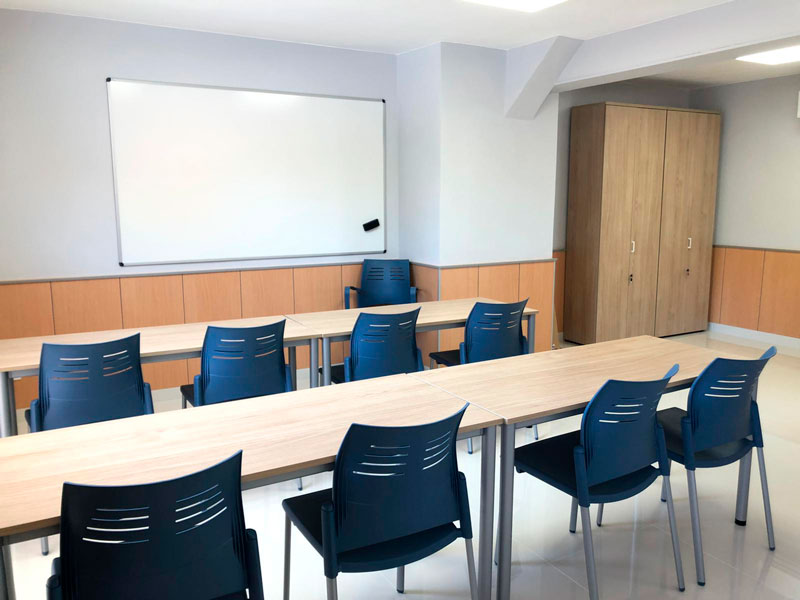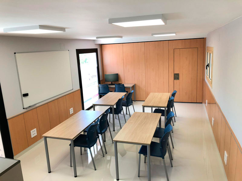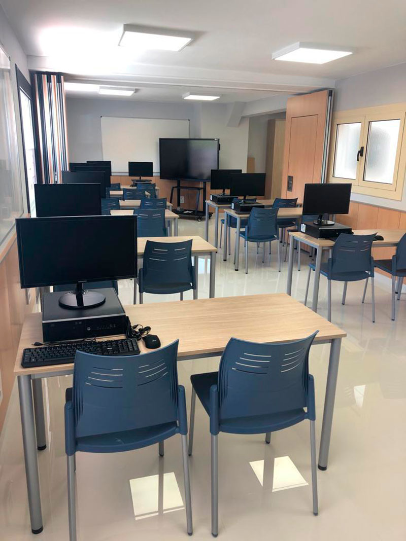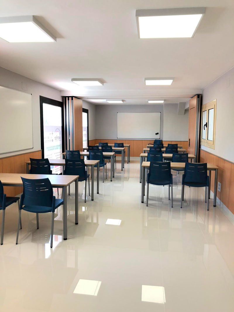 Se dispone de 250 m2 dedicados a la formación, distribuidos en aulas con abundante luz natural, calefacción/Aire acondicionado y mobiliario adecuado para su uso. Sin embargo, nuestra actividad no se limita al ámbito local, pues desarrollamos nuestra labor en múltiples puntos de la geografía aragonesa y disponemos de aulas móviles con todo el equipamiento y mobiliario necesario para la impartición de clases.